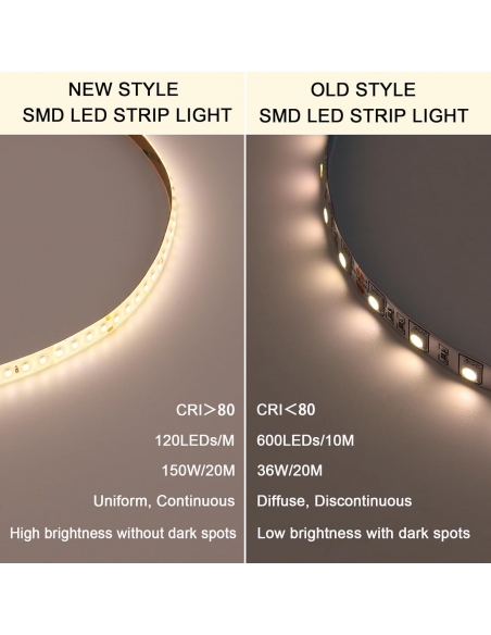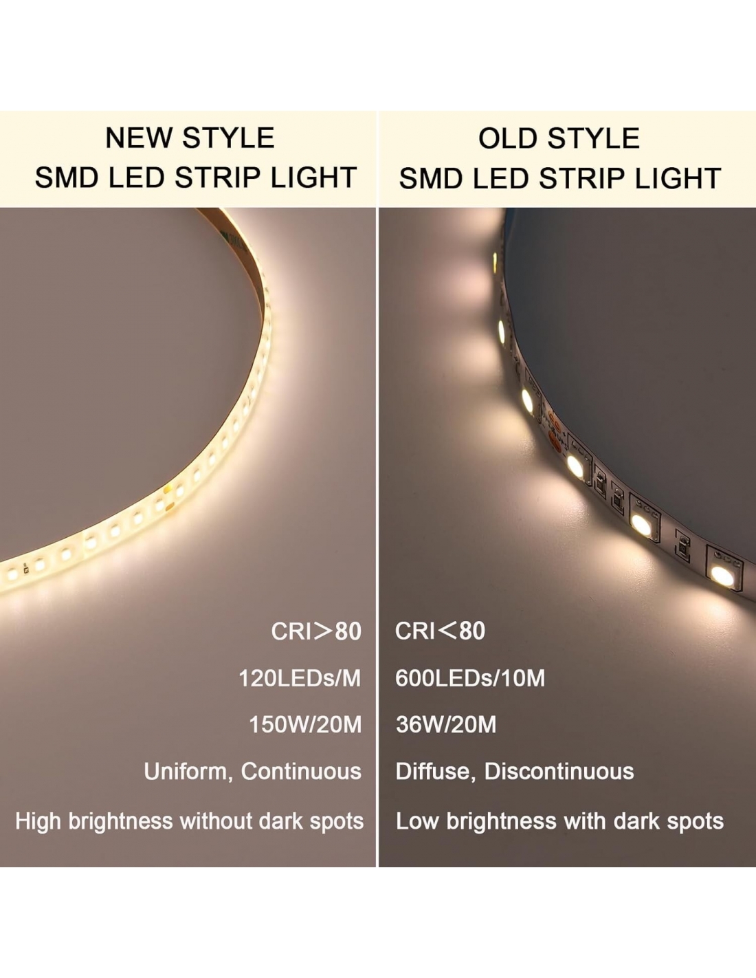 - 【Striscia LED Alta Luminosità】Alta potenza 150W/10M, alta luminosità 750LM/M, alta densità 120LEDs/M, Design con angolo del fascio di 180 gradi, gamma di illuminazione più ampia del 50%, illuminazione uniforme, nessuna preoccupazione per le macchie scure.