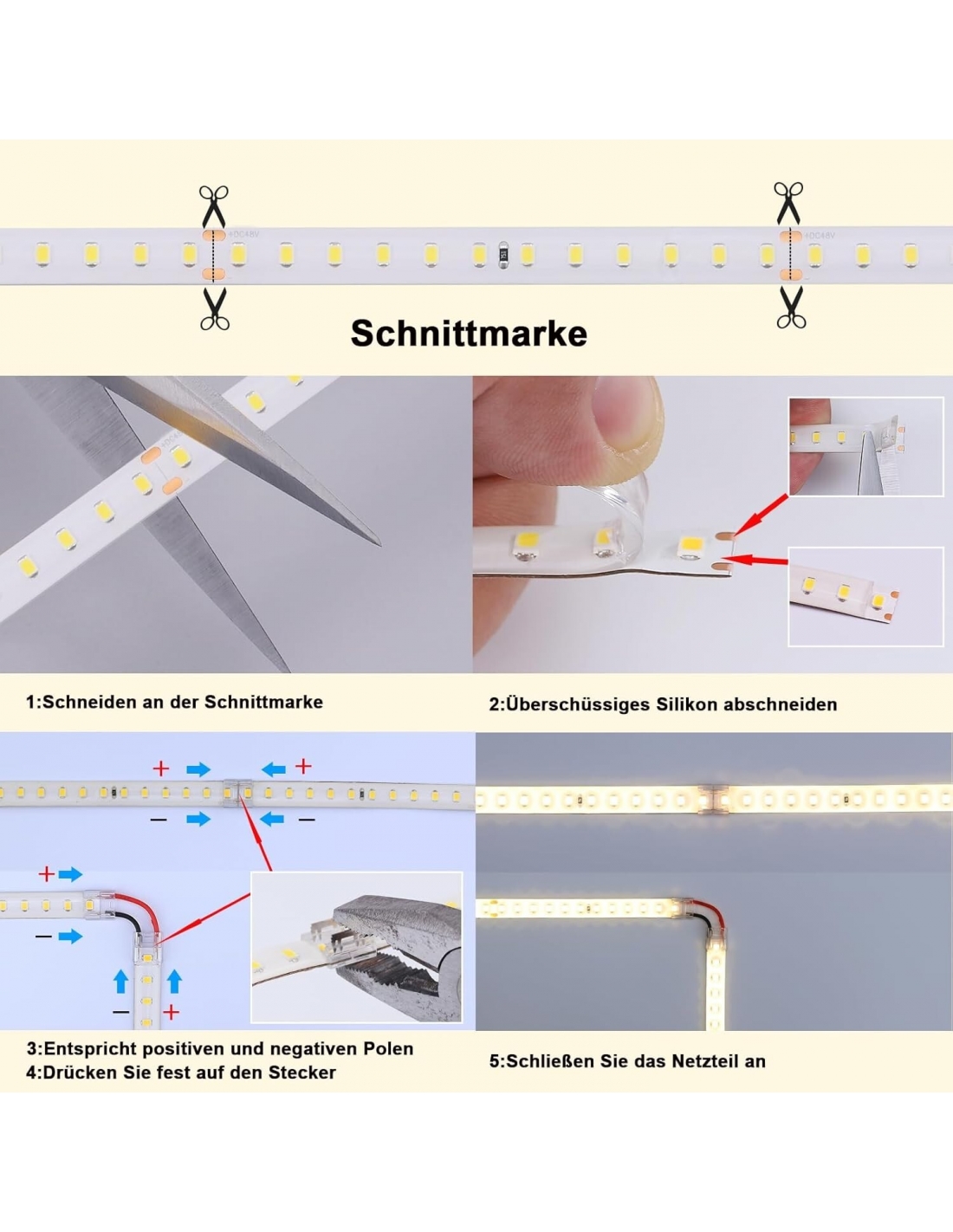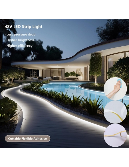 - 【IP65 Esterno Impermeabile】Le strisce LED sono adatte sia per l'uso interno che esterno e il connettore di ingresso dell'alimentazione è ottimizzato per evitare il contatto con metalli sotto tensione, prevenendo così le scosse elettriche. L'uscita dell'alimentatore è una tensione sicura di 48V CC, che riduce al minimo il rischio di scosse elettriche. L'alimentatore è inoltre certificato ETL CE Rosh.