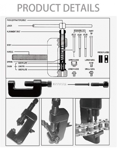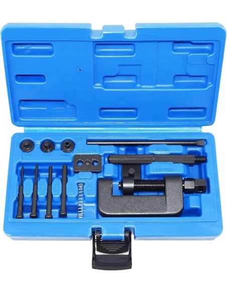 CENWOTL Set di 13 pezzi per interruttore catena per moto, con custodia per il trasporto, tagliacatena e rivettatrice, per moto, bici