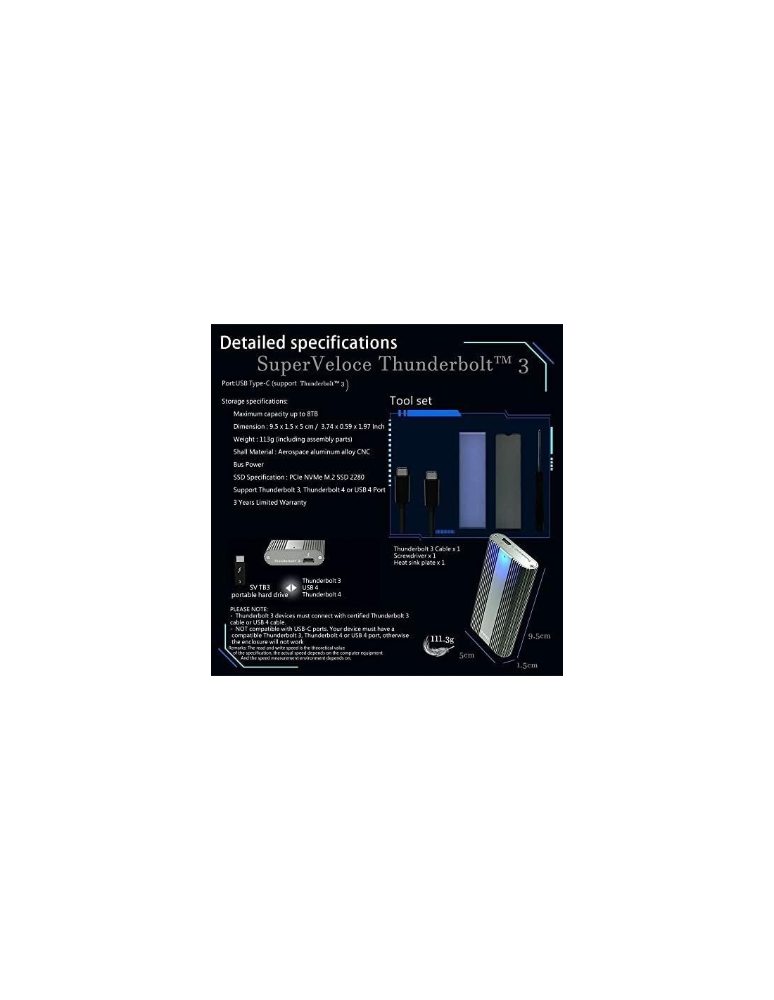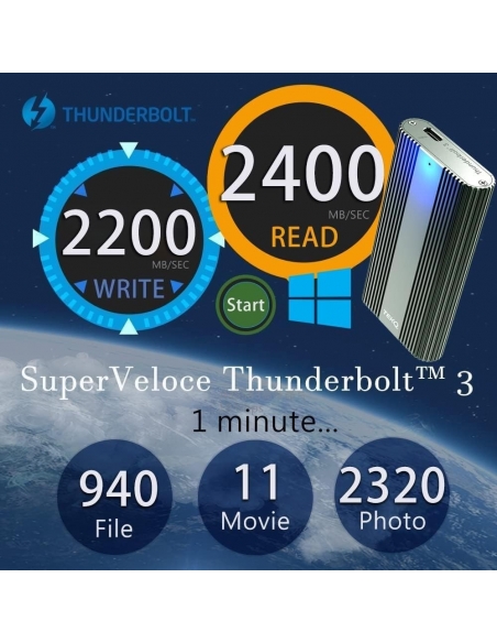 - Dispositivo Plug-and-Play -TEKQ Rapide è un'unità alimentata da bus per Mac e Windows, che consente di collegare Rapide ai dispositivi Thunderbolt 3 senza la necessità di un adattatore di alimentazione, aiutandoti a eseguire il backup di dati preziosi con facilità.