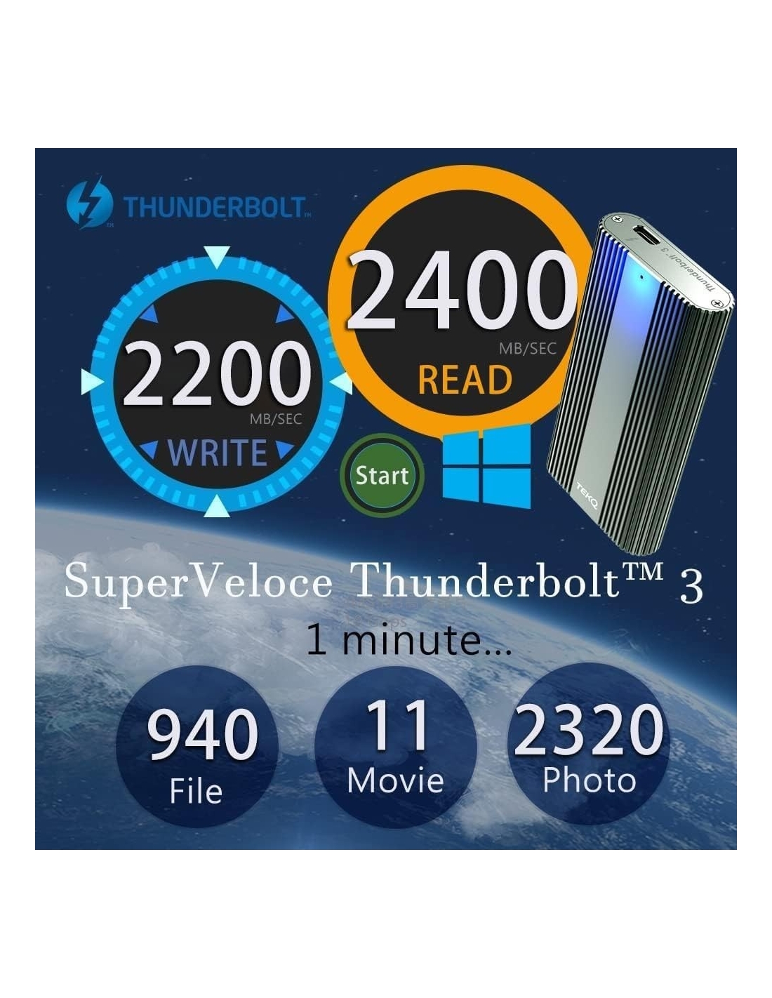 TEKQ 2TB SSD portatile esterno Thunderbolt 3, alimentato a bus, fino a 2500 MB/s