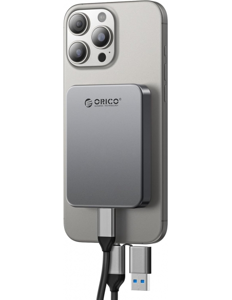 ORICO A20 SSD portatile magnetico da 1 TB, registrazione e archiviazione ProRes HDR 4K a 120 fps, USB 3.2 Gen1 Fine a 460 MB/s, cavo USB C&A 2 in 1, SSD esterno compatibile con iPhone 16/15 Pro Max, tablet, computer - K5PLUS