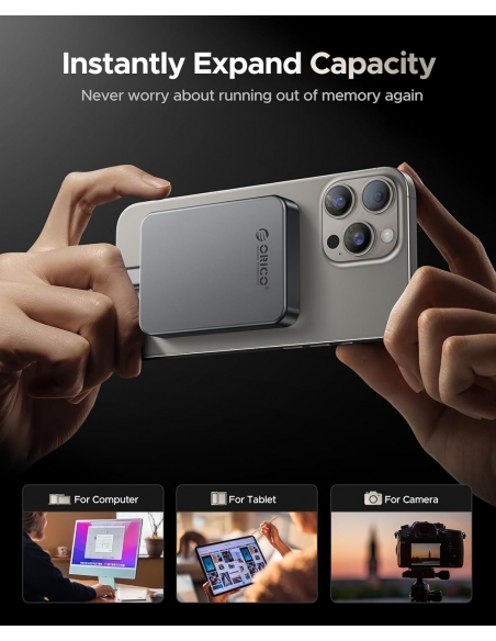 - Espansione istantanea: Questa unità a stato solido esterna può essere collegata ai dispositivi, ORICO Portable SSD è la scelta ideale per gli appassionati di fotografia. L'interfaccia Lightning non funziona con questo prodotto