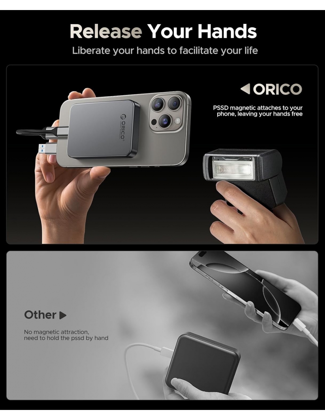 ORICO A20 SSD portatile magnetico da 1 TB, registrazione e archiviazione