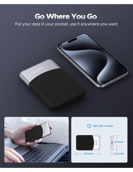 - Vai dove vuoi: con dimensioni compatte di 4,92 x 3,14 x 0,51 pollici, puoi facilmente mettere l'SSD esterno ORICO da 1 TB in tasca o nella valigetta e goderti il viaggio con i tuoi dati