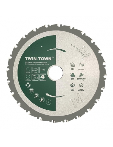 TWIN-TOWN HM Lama per sega circolare multifunzione, 210 x 30 mm, Z24, ideale per legno, legno con chiodi, acciaio, alluminio, acrilico, plastica, laminato e MDF, per sega obliqua