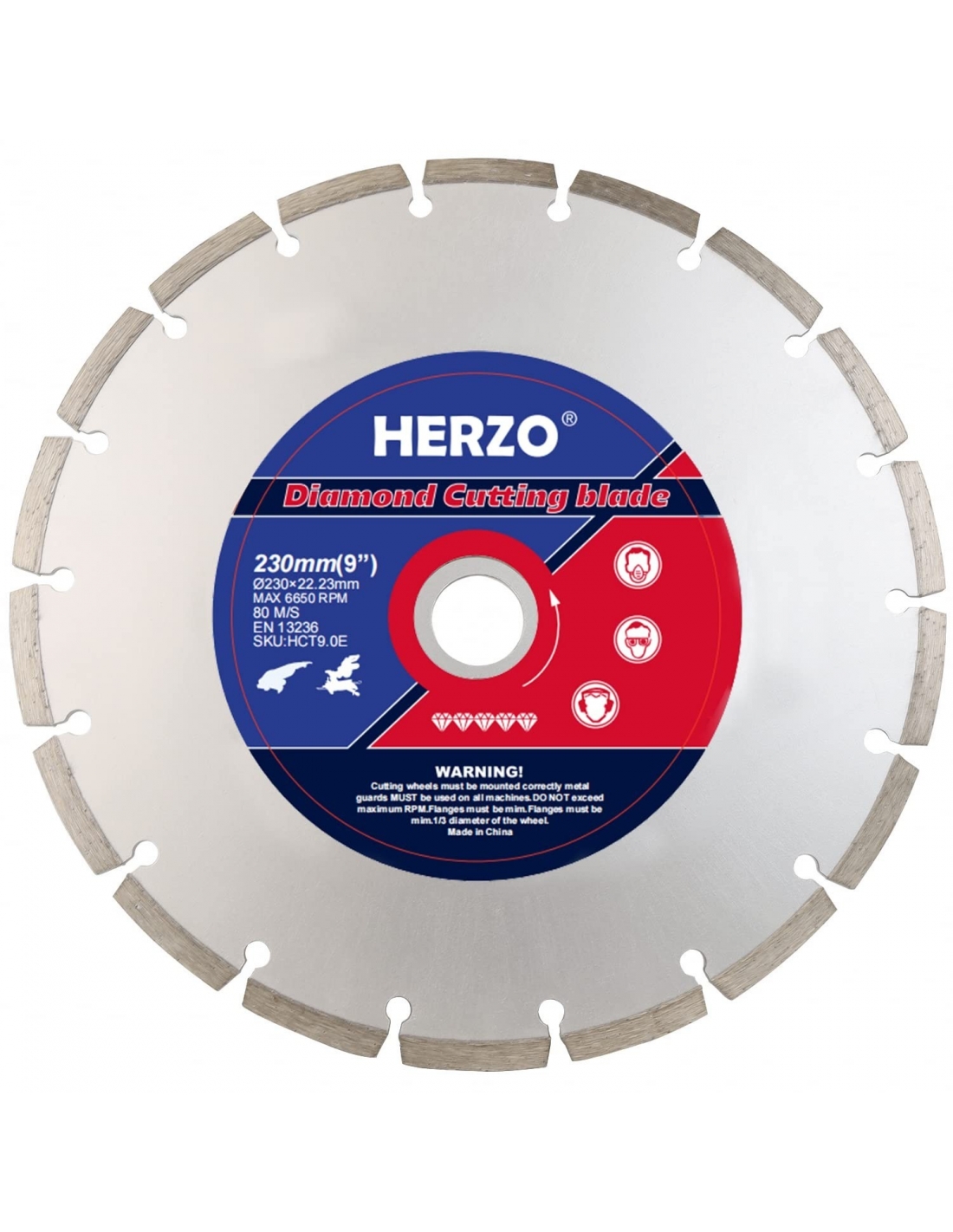 Disco da taglio diamantato HERZO da 230 mm, per il taglio di muratura, mattoni, cemento armato e pietra