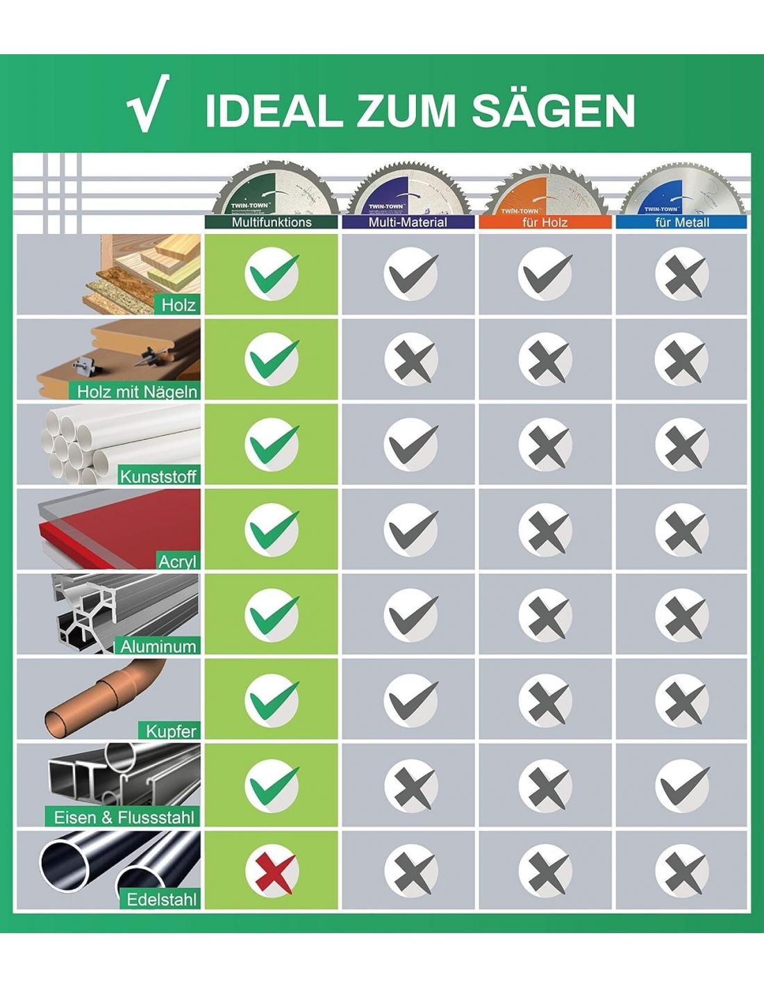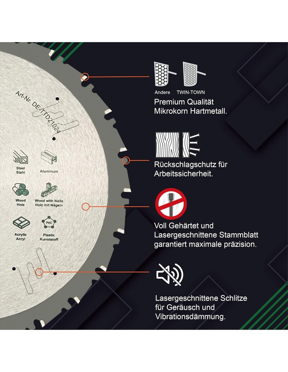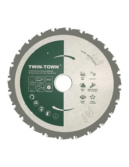 TWIN-TOWN HM Lama per sega circolare multifunzione, 210 x 30 mm, Z24, ideale per legno, legno con chiodi, acciaio, alluminio, acrilico, plastica, laminato e MDF, per sega obliqua