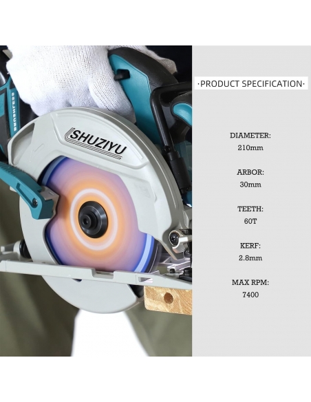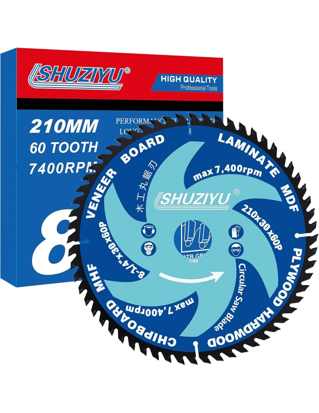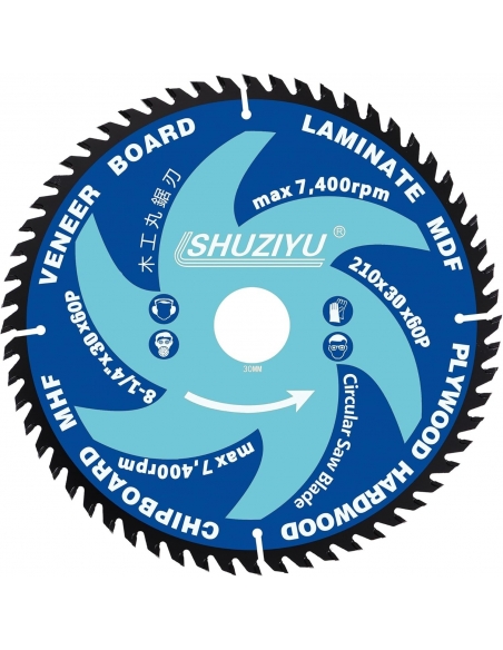 SHUZIYU. 210mm-60T, Foro Centrale 30mm Con Rondella Da 25.4-22.23-20-15.88mm. Lama Per Sega Circolare Per La Lavorazione Del Legno