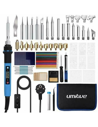 Umitive 92Pz Kit Pirografia Legno, 60W, Temperatura Regolabile, Con 33 Incision