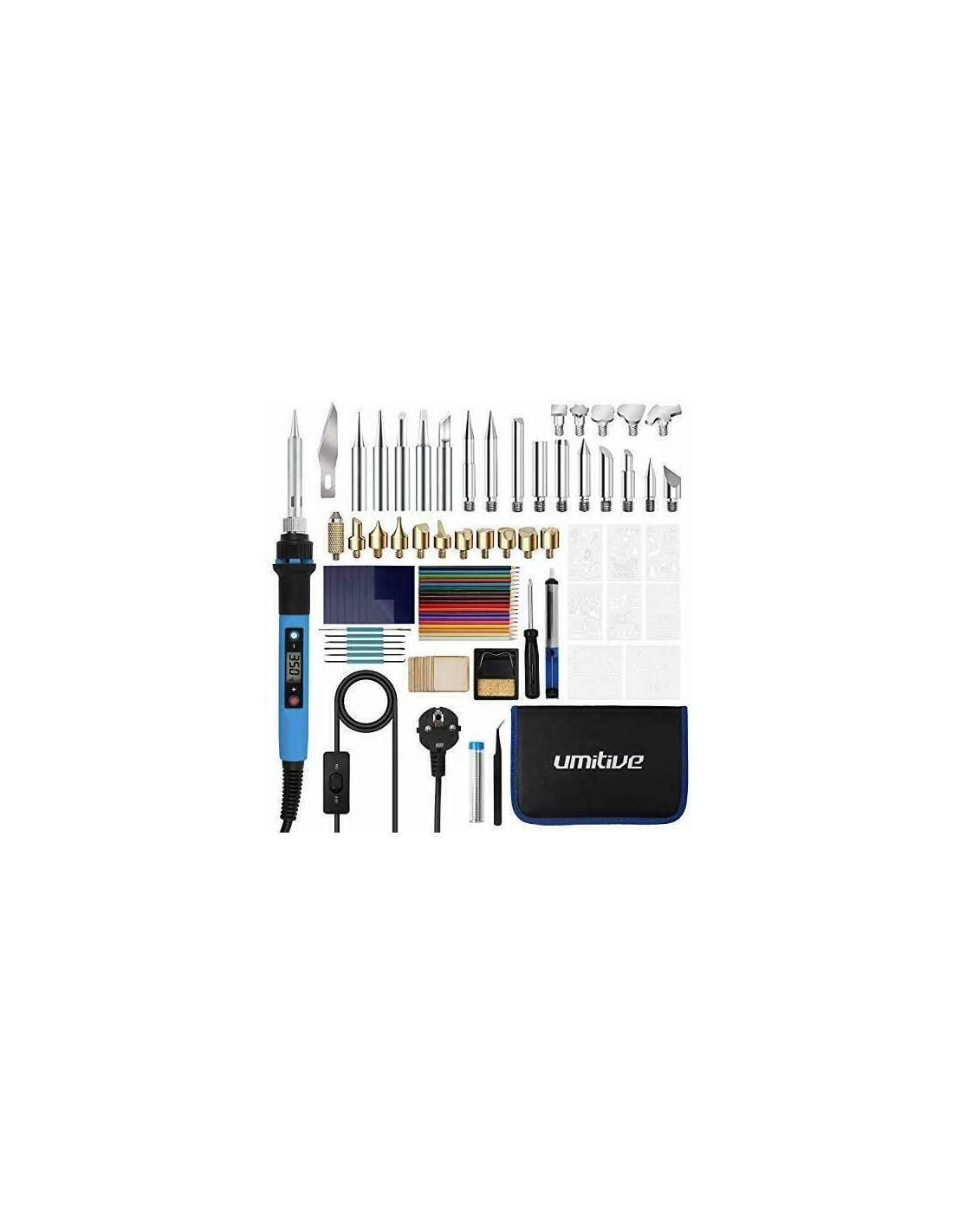 Umitive 92 Pcs Kit Pirografia Legno con LCD Schermo, Cavo di alimentazione da 140 cm con interruttore, 180°C- 480°C Temperatura Regolabile per Saldatura e Pirografo su Cuoio Legno