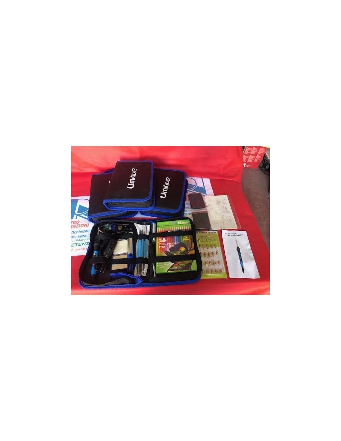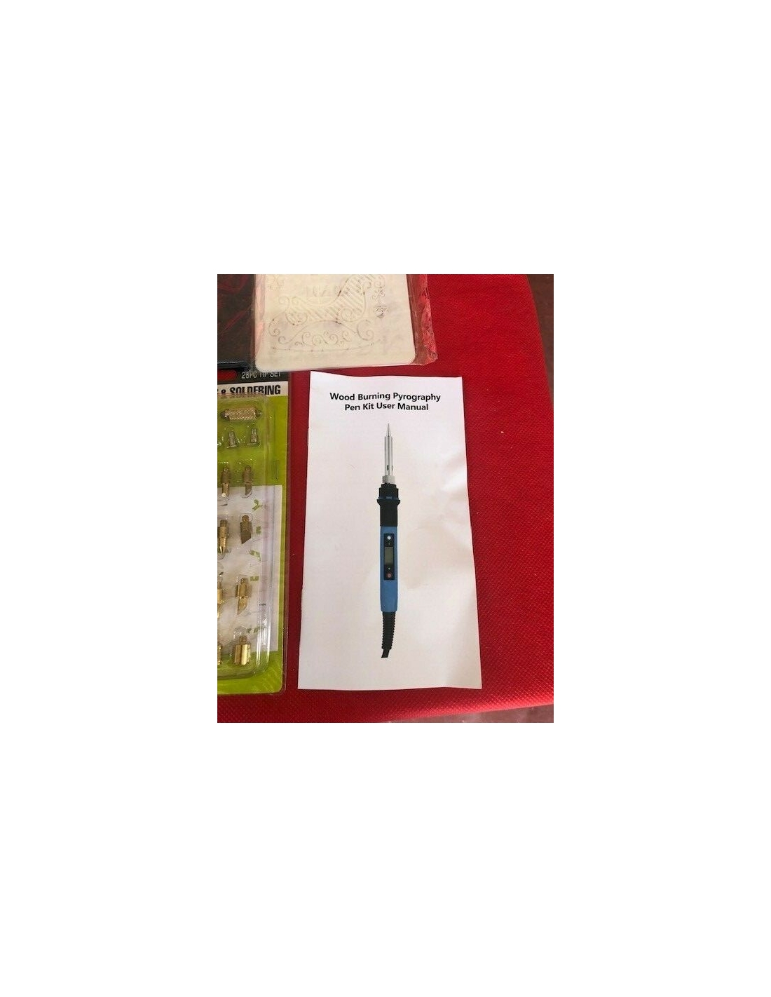 - 92 in 1 Kit penna per pirografia】: Punte per saldatore * 5, Strumento per saldatura a, doppia testa * 6, Pompa dissaldante * 1, Tubo di latta * 1, Pinzette * 1, Cacciavite * 1, Suggerimenti per l'intaglio del legno * 10, Suggerimenti per la combustione del legno * 10, Suggerimenti per la goffratura del legno * 5, Testa del tagliatore * 1, Testa della lama * 1, Lama riscaldante * 1, Stencil modello * 8, Carta carbone * 10, Matite colorate * 18, Pezzi di legno quadrati * 10.