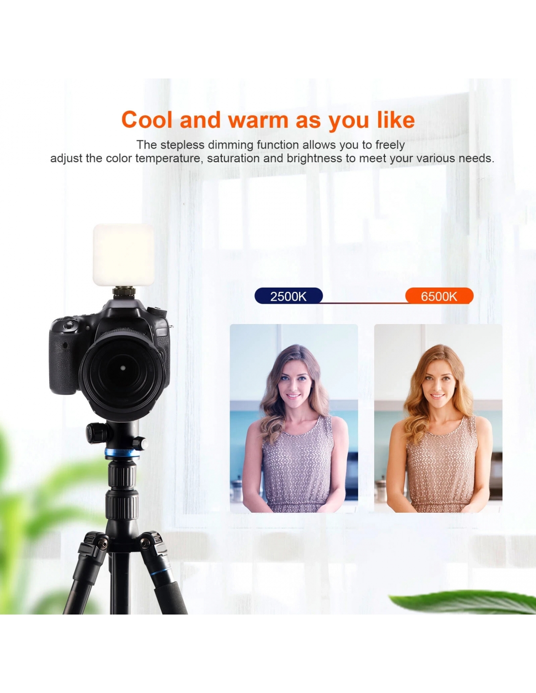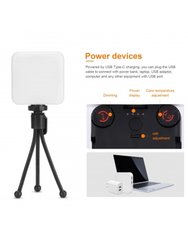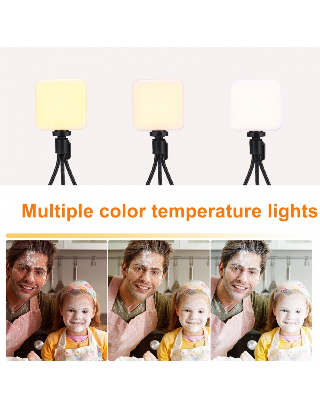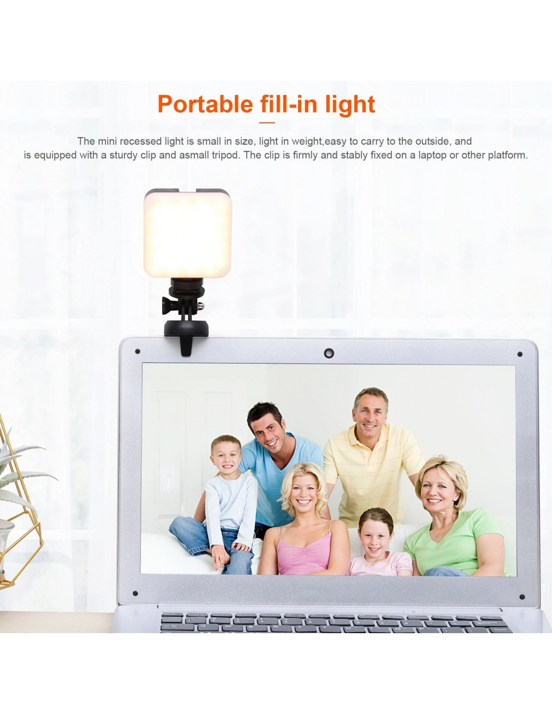 Il mini fill-in luce è di piccole dimensioni e leggero nel peso, facile da trasportare al di fuori, attaccato con una robusta clip e piccolo treppiede, la clip fissa saldamente e costantemente sul computer portatile o altre piattaforme, si può luminosa la luce in tutto il mondo.