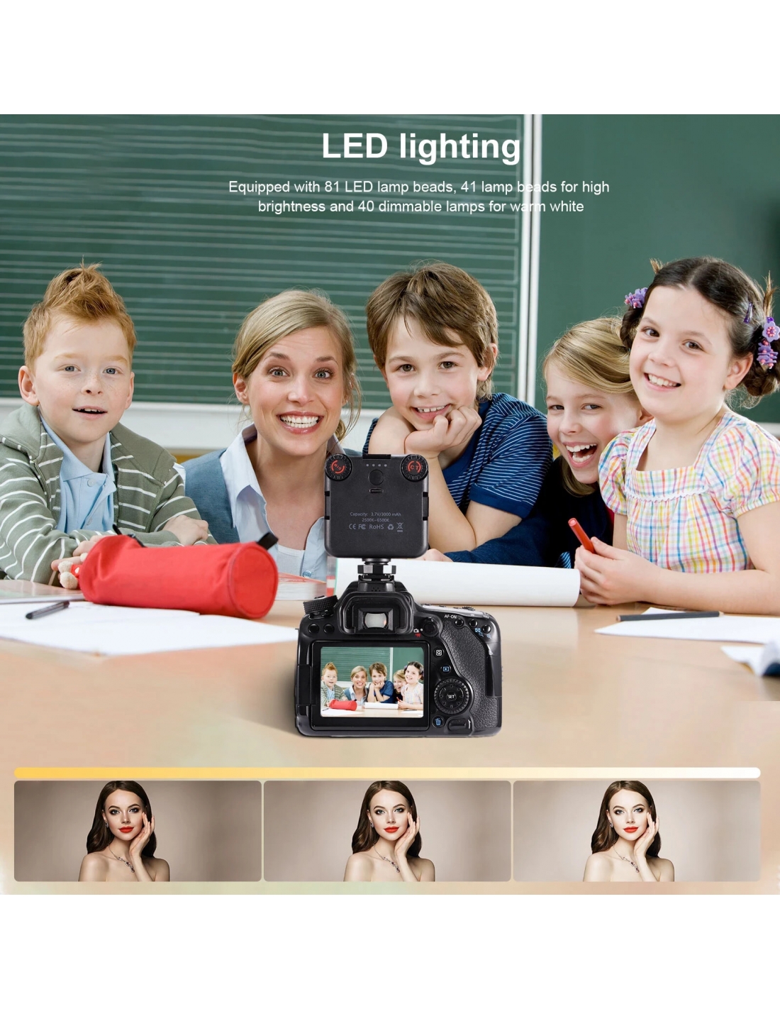 Dotato di 81 pezzi di perline LED, 41 per la luce luminosa e 40 per il bianco caldo, illuminazione dimmerabile ti fa sembrare più bella e attraente attraverso la fotocamera del telefono e webcam, con la temperatura di colore da 2500-6500K.