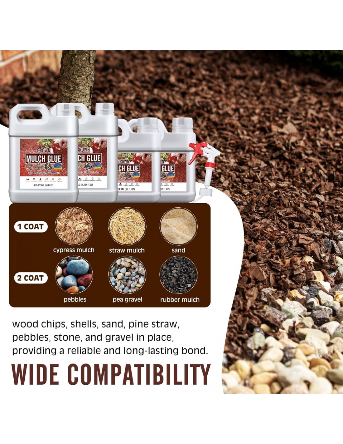 - COLORANTE E COLLA PER PACCIAME A LUNGA DURATA - La nostra versione aggiornata della colla per pacciame marrone offre un effetto adesivo 10 volte più forte, conferendo al pacciame un nuovo aspetto. Fissa efficacemente il pacciame sul posto e previene lo spostamento o l'erosione causati dal vento, dal dilavamento dovuto a forti piogge o dal traffico pedonale. Formando un forte legame con il pacciame, garantendo un paesaggio che dura a lungo e richiede una manutenzione minima.