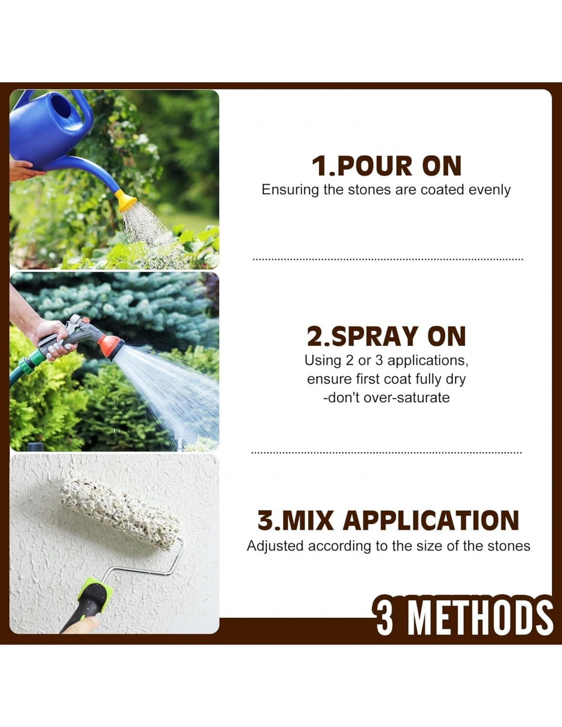 - TENUTA DUREVOLE ED EFFICACE - La colla legante per ghiaia si asciuga in 12 - 24 ore e durerà 12 mesi prima della riapplicazione. L'adesivo per pacciamatura mantiene la vivacità del colore e l'adesione di lunga durata nonostante le condizioni atmosferiche avverse, elimina il fastidio di dover costantemente sostituire o riapplicare. Si consiglia di applicare 2-3 mani per ottenere i migliori risultati.