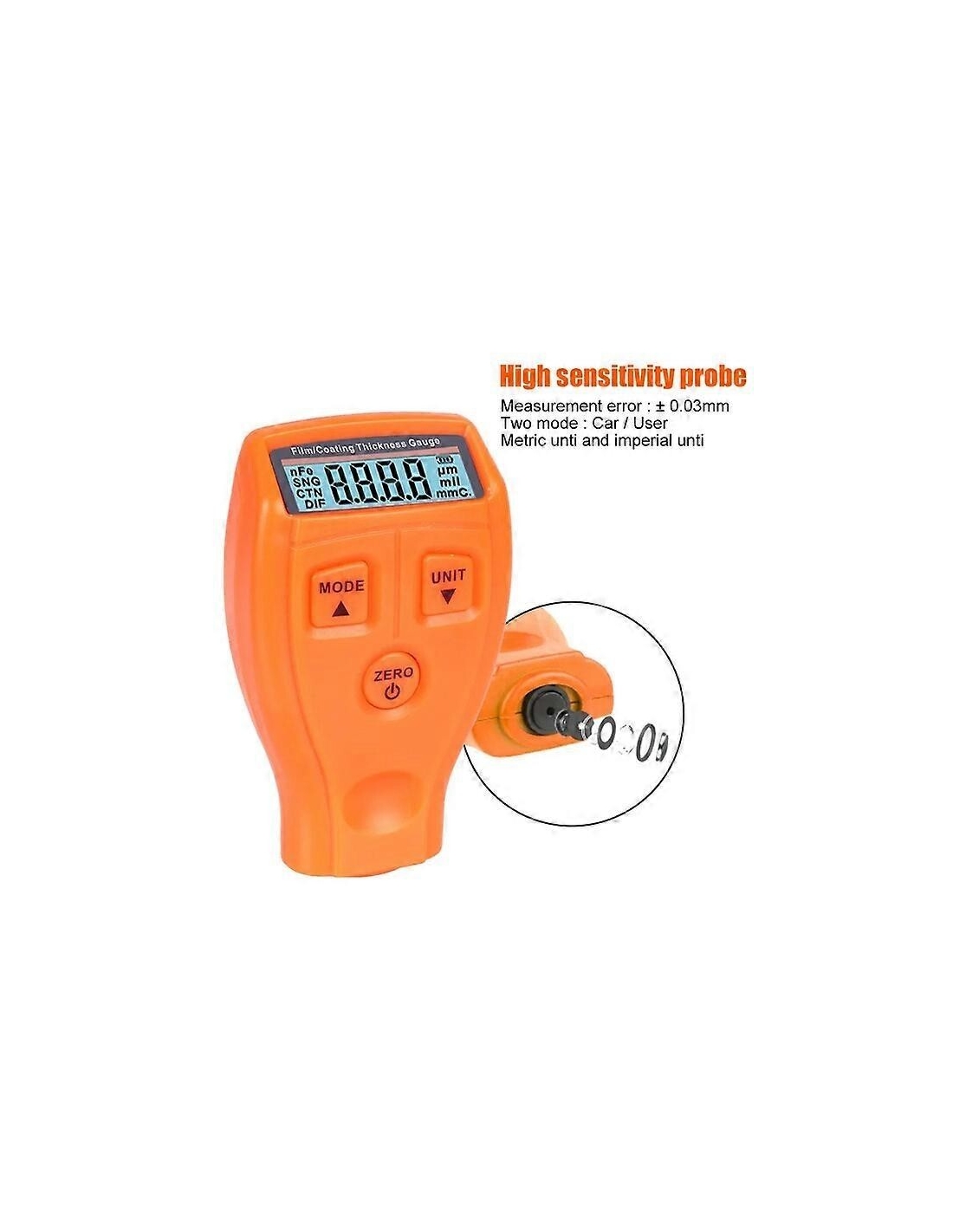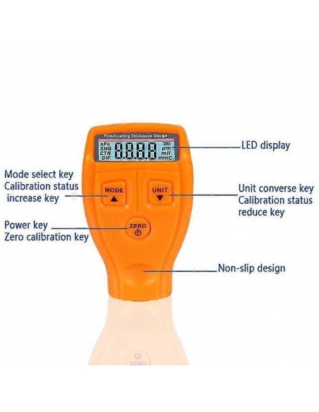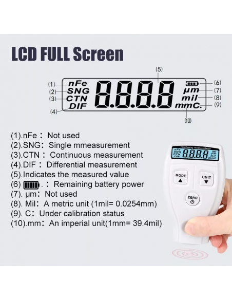 - Funzioni: misurazione dello strato di vernice su superfici metalliche, misurazione dello spessore della vernice spray per automobili, misurazione dello spessore della carta, misurazione dello spessore della pellicola.