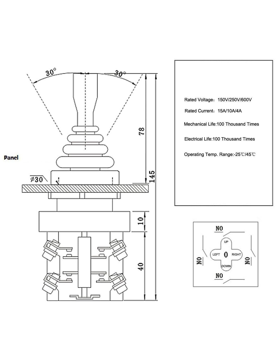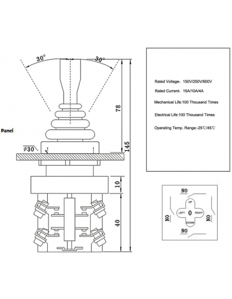 Joystick Switch Controller 4 posizioni 4NO Latching Tipo 150V/250V/600V 30mm