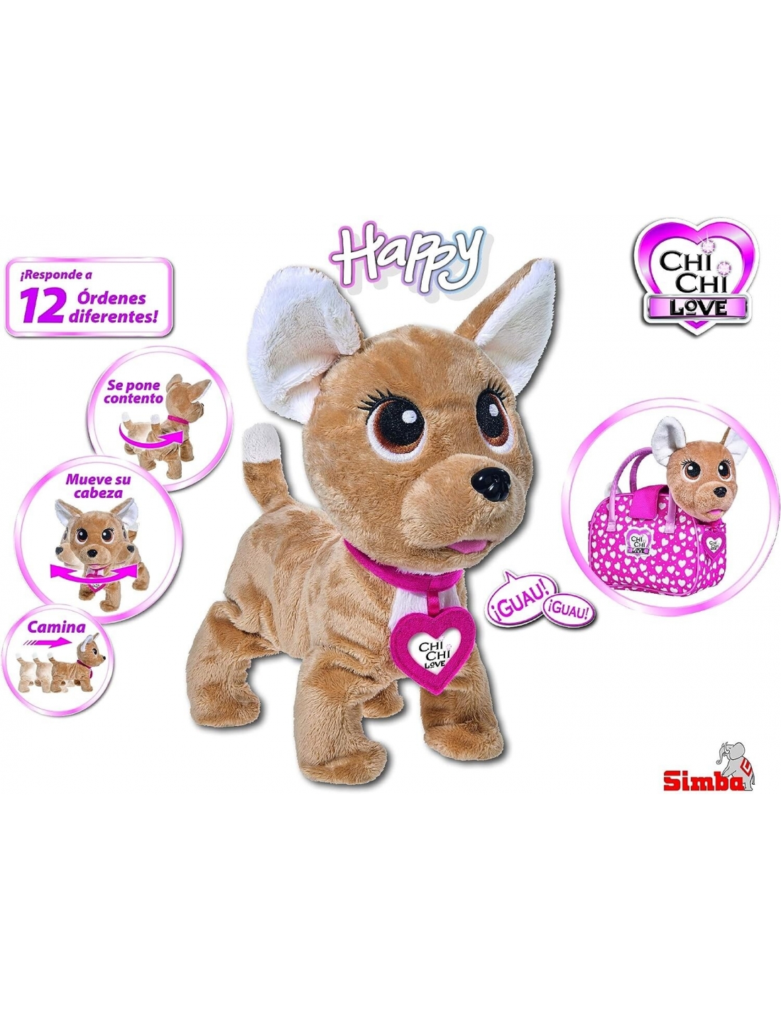 Non solo un giocattolo, ma un piccolo cucciolo che risponde al contatto umano. Prova ad accarezzarlo e Chi Chi Love ti regalerà tutta la sua felicità incontenibile. Tirandogli invece la codina, lo sentirai abbaiare. Chi Chi Love - Happy cammina incontro alla tua bambina scodinzolando di gioia, chiamalo con il comando vocale "Vieni qui" per attivare la funzione. Chi Chi Love indossa un delizioso collare rosa impreziosito da un ciondolo a forma di cuore. Nella confezione è inclusa anche una pratica borsetta per portare Chi Chi Love sempre con te. Chi Chi Love aspetta solo di diventare il tuo migliore amico.