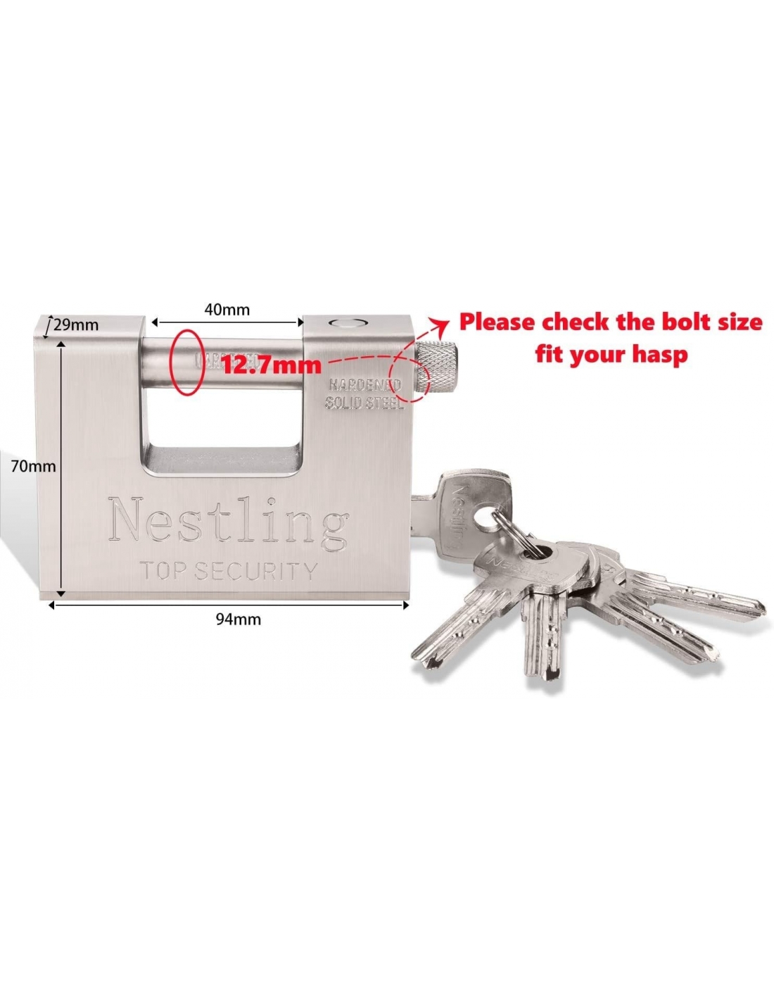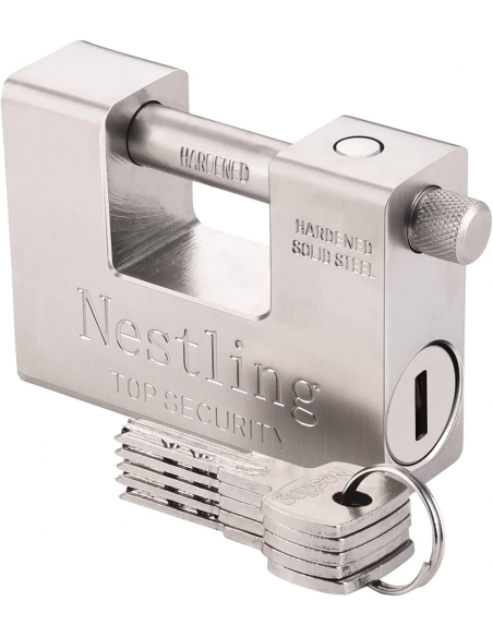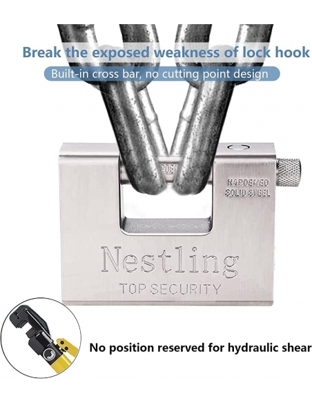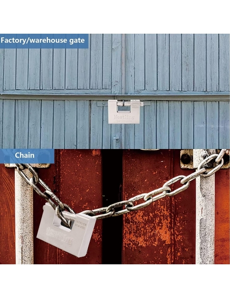 - Lucchetto ad alta sicurezza: lucchetto in acciaio a lunga presa, durevole e sicuro, di cui ci si può fidare. Questo design avanzato non lascia punti deboli sul lucchetto e impedisce attacchi mediante taglio o segatura.