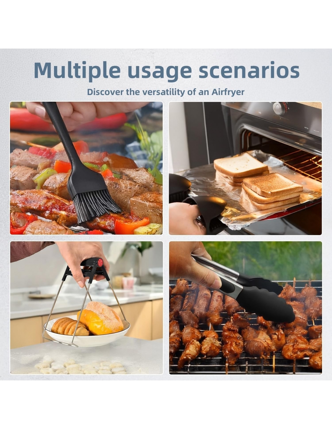 - 【MATERIALI DI ALTA QUALITÀ】Tutti gli friggitrice ad aria accessori sono realizzati con materiali per uso alimentare e sono privi di BPA. Gli accessori in silicone sono in silicone resistente alle alte temperature, morbido e indeformabile. Gli accessori metallici sono tutti realizzati in acciaio inossidabile, robusti e antiruggine
