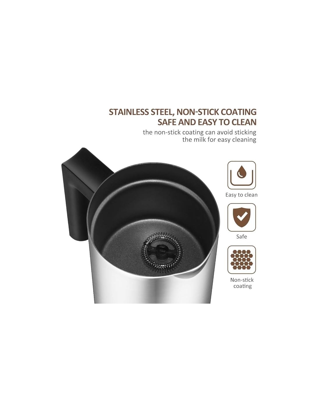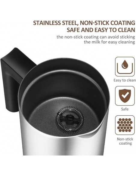 KYG Professional Automatic Electric Milk Frother in Stainless Steel, Quiet Operation Suitable for Hot or Cold Milk Non-Stick Coating Fast Foam 220-240 V