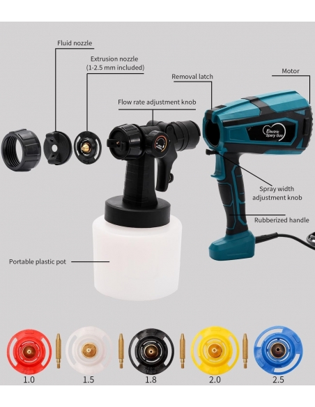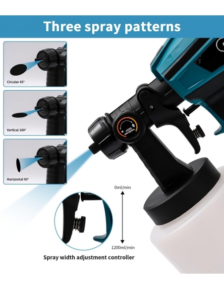 - Grande capacità, alta potenza: la pistola per verniciare è dotata di un motore da 800 W, che fornisce una forte potenza di uscita, e di un contenitore da 1200 ml, che consente di gestire un'area di lavoro più ampia in una sola volta