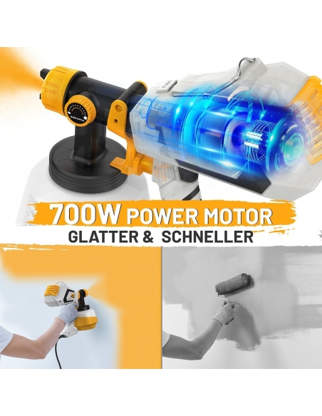 - [Potenza senza limiti!] Nuovo design migliorato con motore da 700W, che aumenta le prestazioni di spruzzatura e la finezza della nebulizzazione. Gli ugelli in ottone sono più facili da pulire rispetto a quelli in plastica, difficili da ostruire e resistenti ai danni. Il design ultraleggero, con un peso di soli 1,4 kg, previene l'affaticamento delle mani anche durante lunghi periodi di lavoro.
