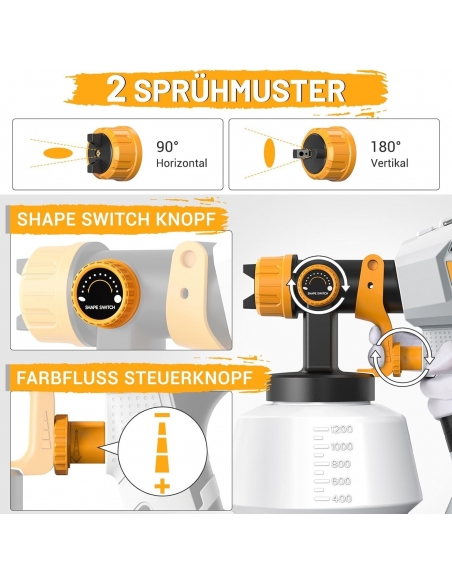 - [Più tempo per spruzzare, meno tempo per pulire!] Dotato di un contenitore capiente da 1200 ml, offre ampio spazio per le tue idee creative di verniciatura, eliminando la necessità di rabbocchi frequenti. Super leggero e facile da usare. Include un kit di pulizia per rimuovere la vernice indurita, garantendo una pulizia facile ed efficace.