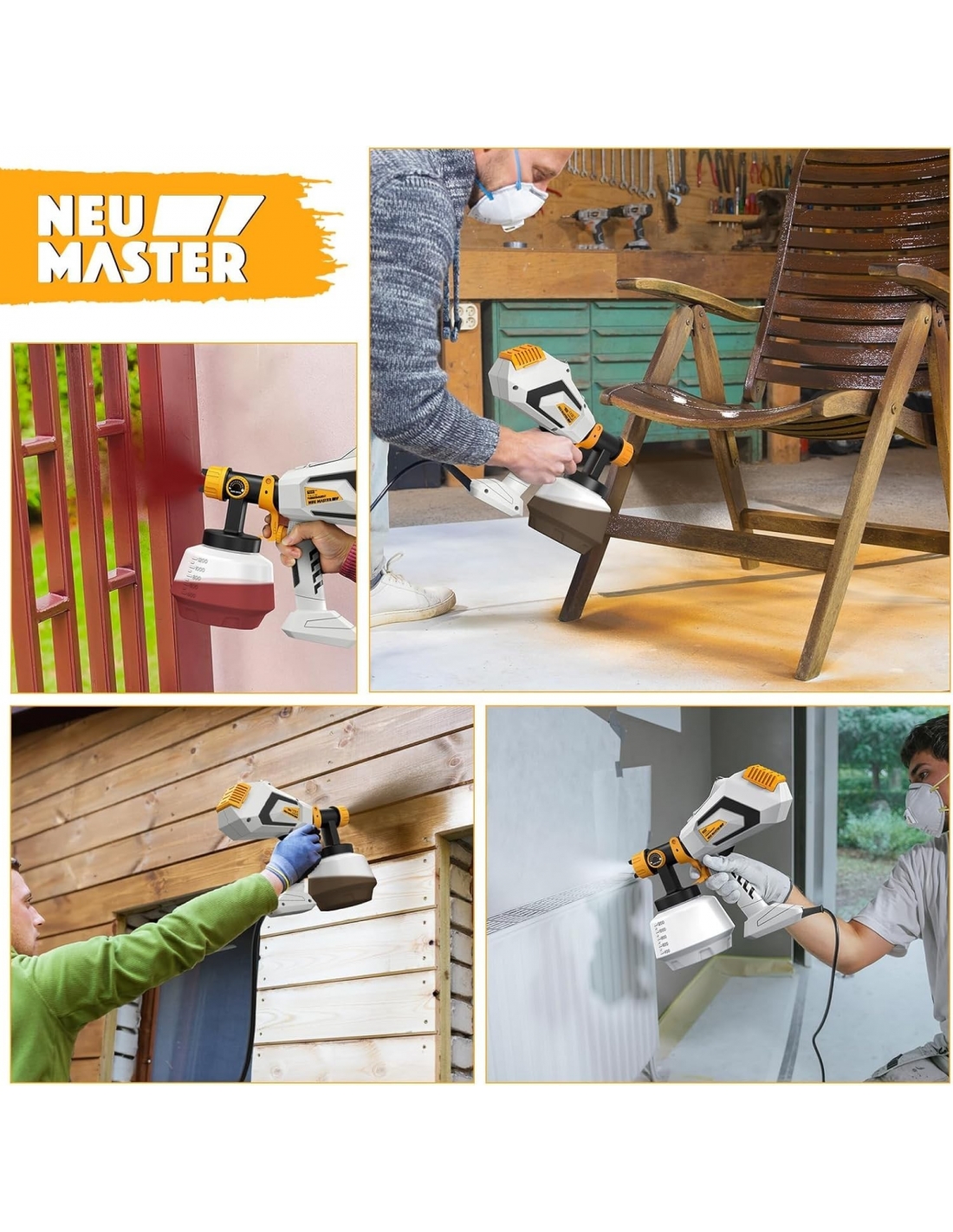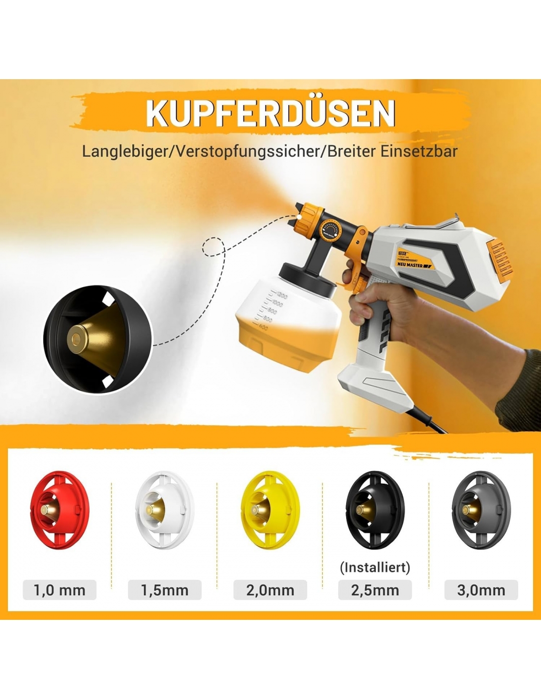 NEU MASTER JH-17J-650 Pistola a Spruzzo per Verniciare 700W HVLP Pistola a Spruzzo Elettrica con Contenitore da 1200 ml/ 4 Cuivre Ugelli/10 Carta da Filtro