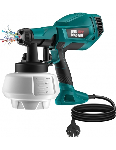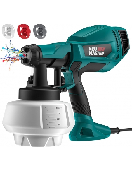 NEU MASTER Pistola a Spruzzo per Verniciare Elettrica Flusso Massimo di 800ml/min con Contenitore da 1200 ml/ 3 Modalità/500W/3 Ugelli