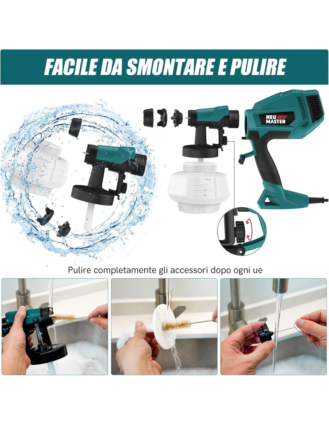 NEU MASTER Pistola Spruzzo per Verniciare Elettrica Flusso Massimo di 800ml/min