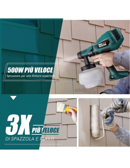 - ⏩[500 W Ad Alta Potenza] - L'elevata potenza rende questo pistola a spruzzo uno dei pistola a spruzzo professionale più potenti sul mercato. Funziona più velocemente di un rullo o una spazzola, Risparmia molto tempo per il lavoro.