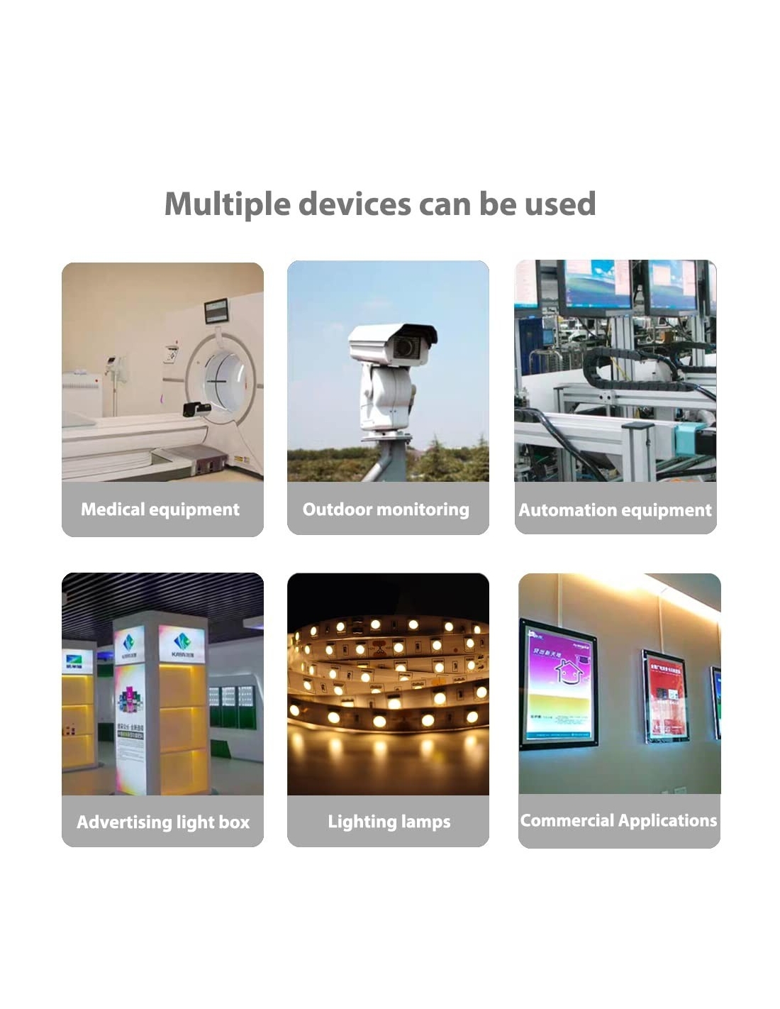 - 【Applicazione】 L'alimentatore da 24 V 10 A viene utilizzato in luci a LED, strisce LED, stampanti 3D, radio, ecc. e altri dispositivi da 24 V inferiori a 240 W.