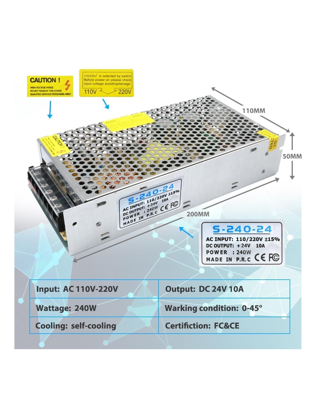 - 【Contenuto della confezione】1 alimentatore switching da 24 V 10 A 240 W. Il prodotto è coperto da garanzia. In caso di domande, non esitate a contattarci.