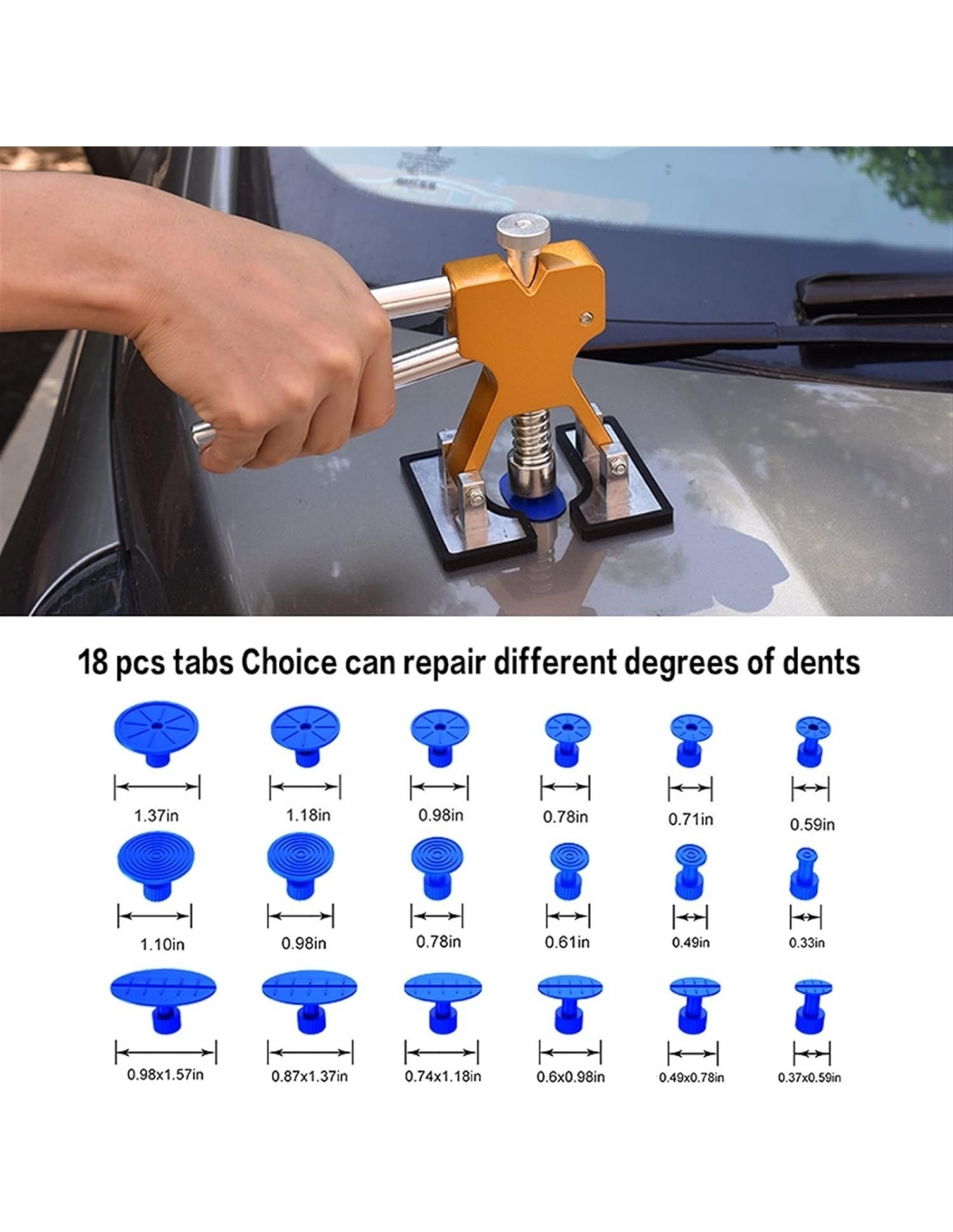 - Il nostro set per la rimozione delle ammaccature è adatto per riparare le ammaccature delle porte, i danni causati dalla grandine e altre ammaccature. Ed è efficace su auto, moto, frigorifero, lavatrice, ecc.