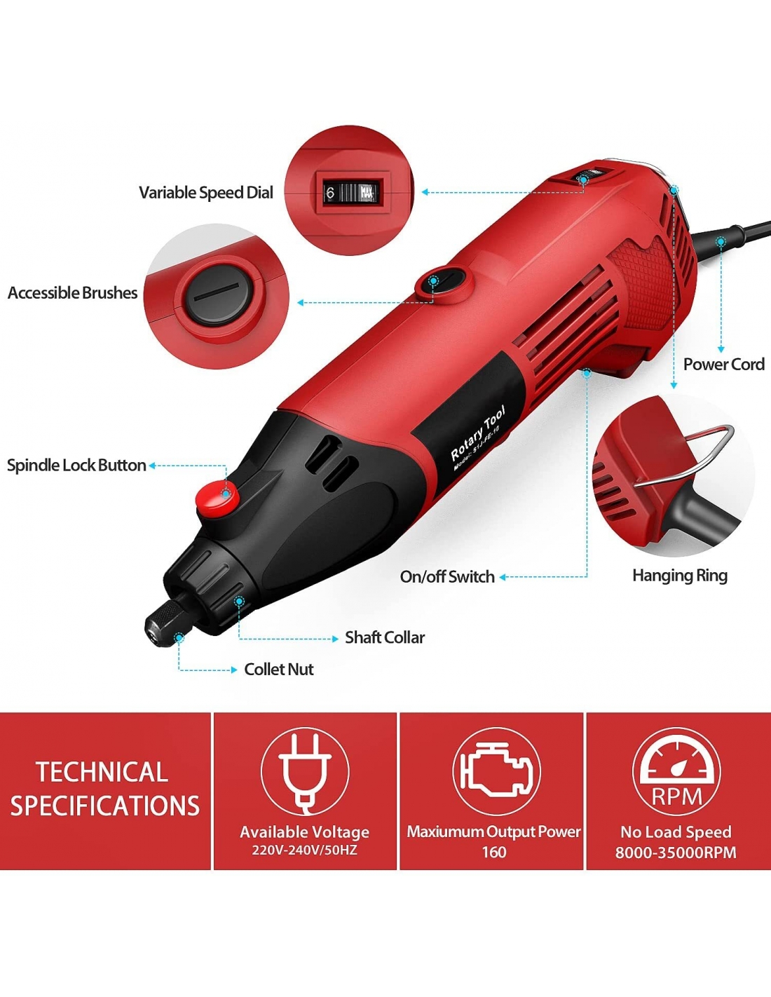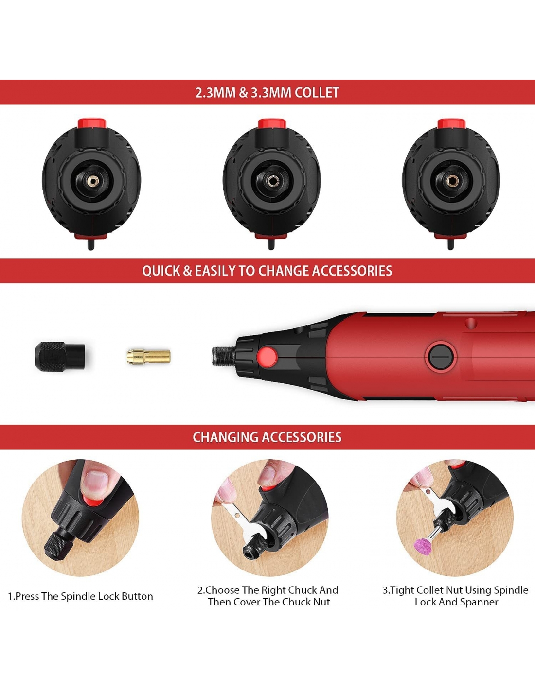 - 【Design ergonomico】 Progettato ergonomicamente per un facile utilizzo, un maggiore comfort e risultati ottimali. Compatibile con la maggior parte degli accessori per utensili rotanti ad alta velocità sul mercato. I fori di ventilazione progettati professionalmente dissipano efficacemente il calore rilasciato durante il funzionamento dell'utensile rotante elettrico, prolungano la durata della batteria e consentono di utilizzarla in sicurezza per lungo tempo.