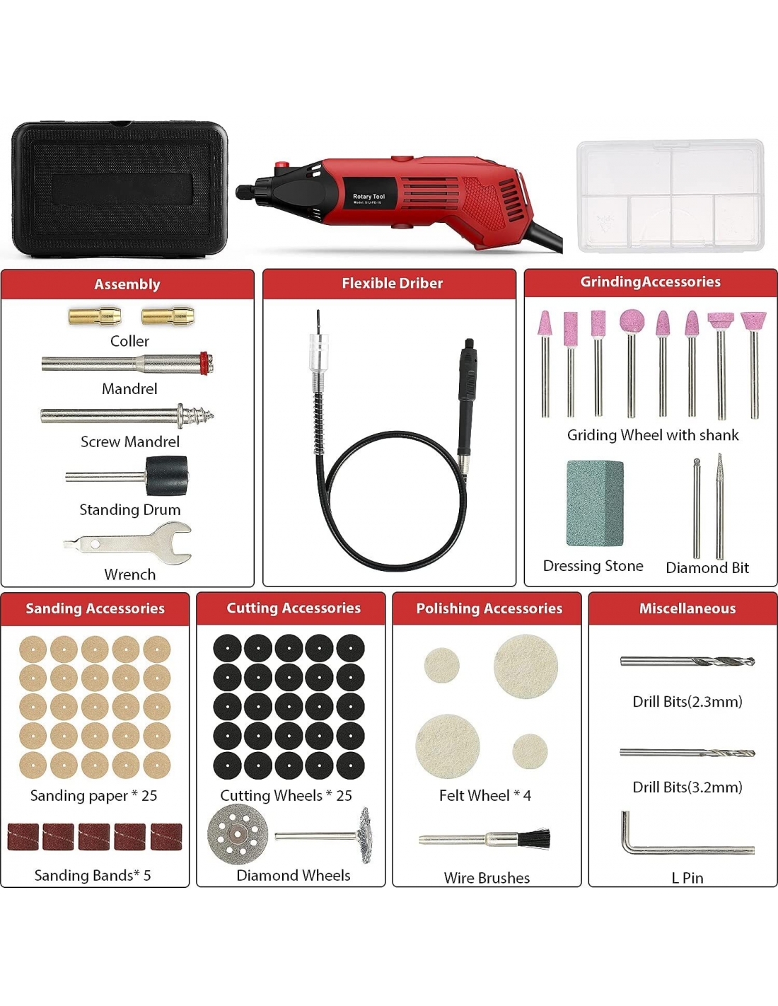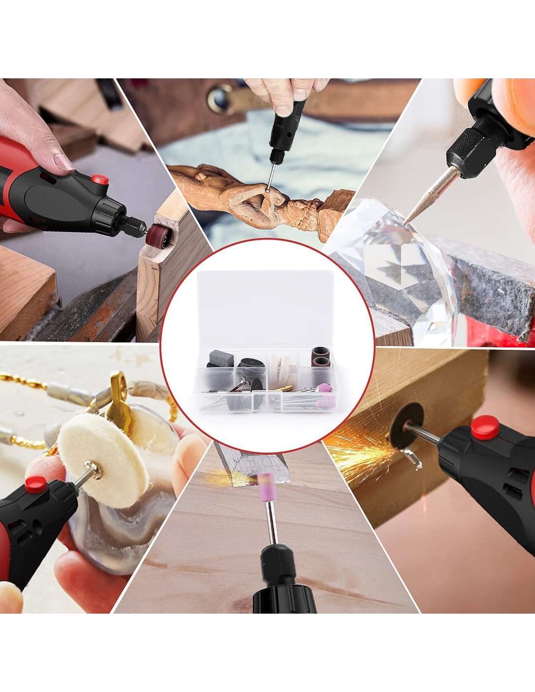- 【Accessori 83 pezzi】 Kit di utensili rotanti a batteria che copre tutte le esigenze di taglio, molatura, fresatura, pulizia, lucidatura, foratura, levigatura e incisione. Ideale per progetti di bricolage e creazioni fai-da-te in casa, hobby, strumenti per gioielli, modellismo, lavorazione del legno, lavorazione dei metalli e altro ancora.