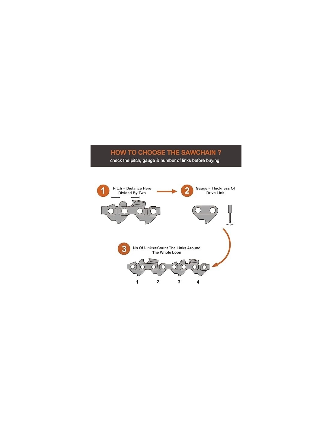 - 【40 cm Catena di motosega】: alte prestazioni e design leggero per una migliore sicurezza della sega. Ogni rivetto subisce un trattamento termico e processi di tempra per rendere più forte la connessione tra le maglie della catena. Non facile da rompere.