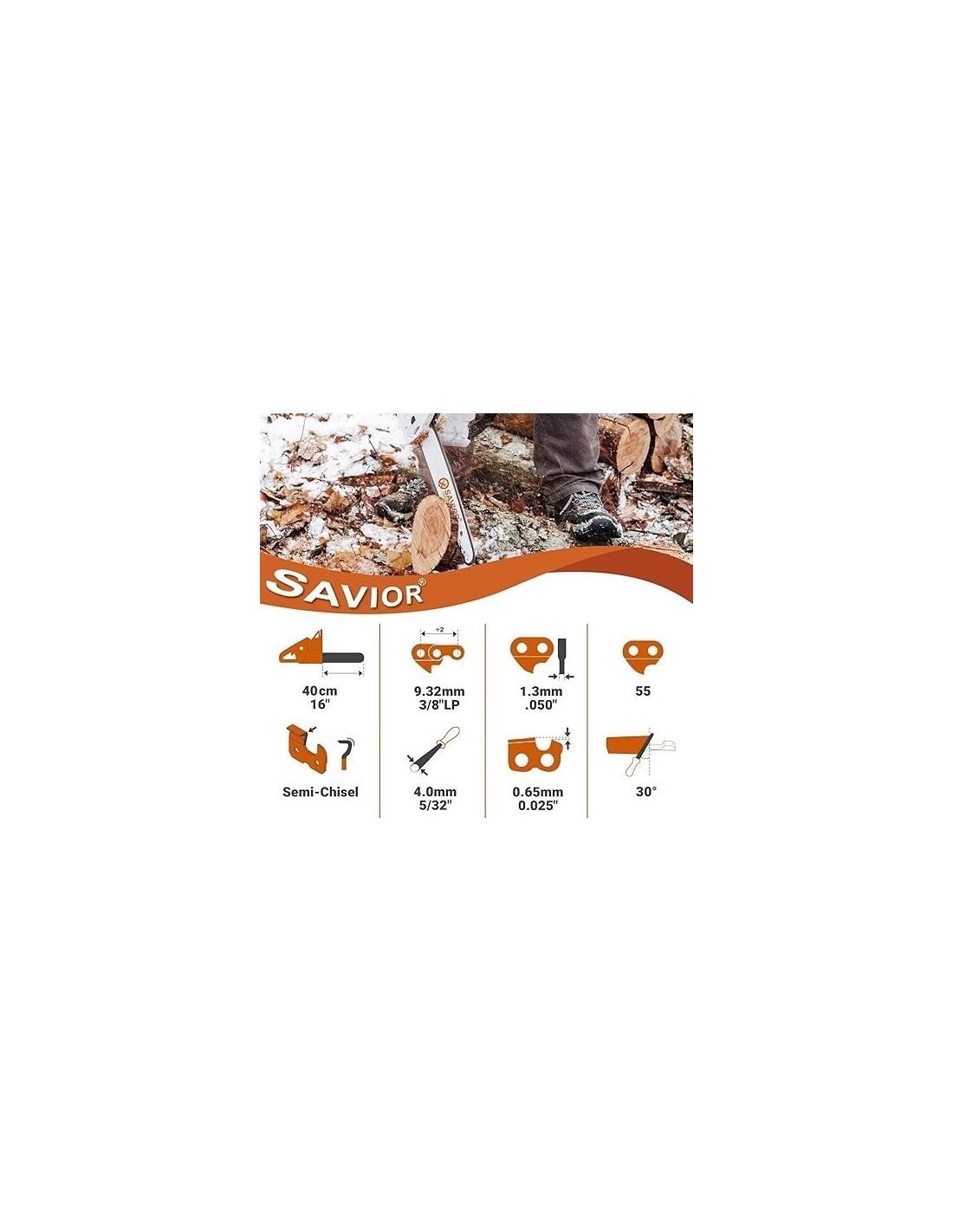 - 【Specifica】: Lunghezza della barra: 40 cm (40 cm), passo: 3/8"LP, calibro:.050" (1,3 mm), maglie di trasmissione: 55 maglie. Assicurarsi di verificare la compatibilità prima dell'acquisto.