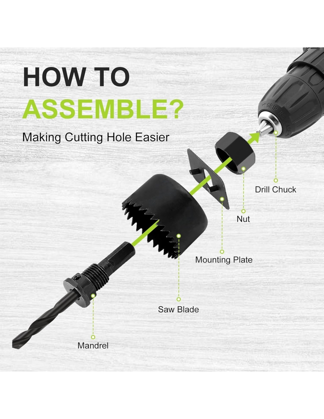 - 【Set completo per un uso versatile】: il nostro kit di 12 lame per seghe a tazza include varie dimensioni da 3/4" a 5" con mandrini/alberi in 2 pezzi, chiave esagonale e piastra di installazione per un'esperienza di foratura senza problemi.