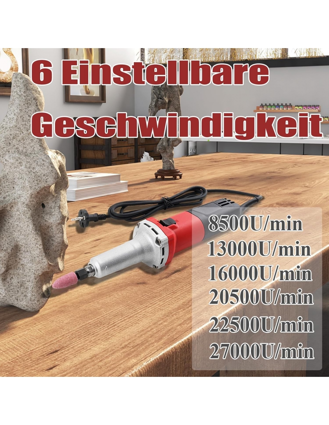 Anesty Smerigliatrice dritta 750 W, 0-27000 giri/min elettrica dritta con regolatore di velocità, smerigliatrice con 14 accessori, pinza Ø 6 mm