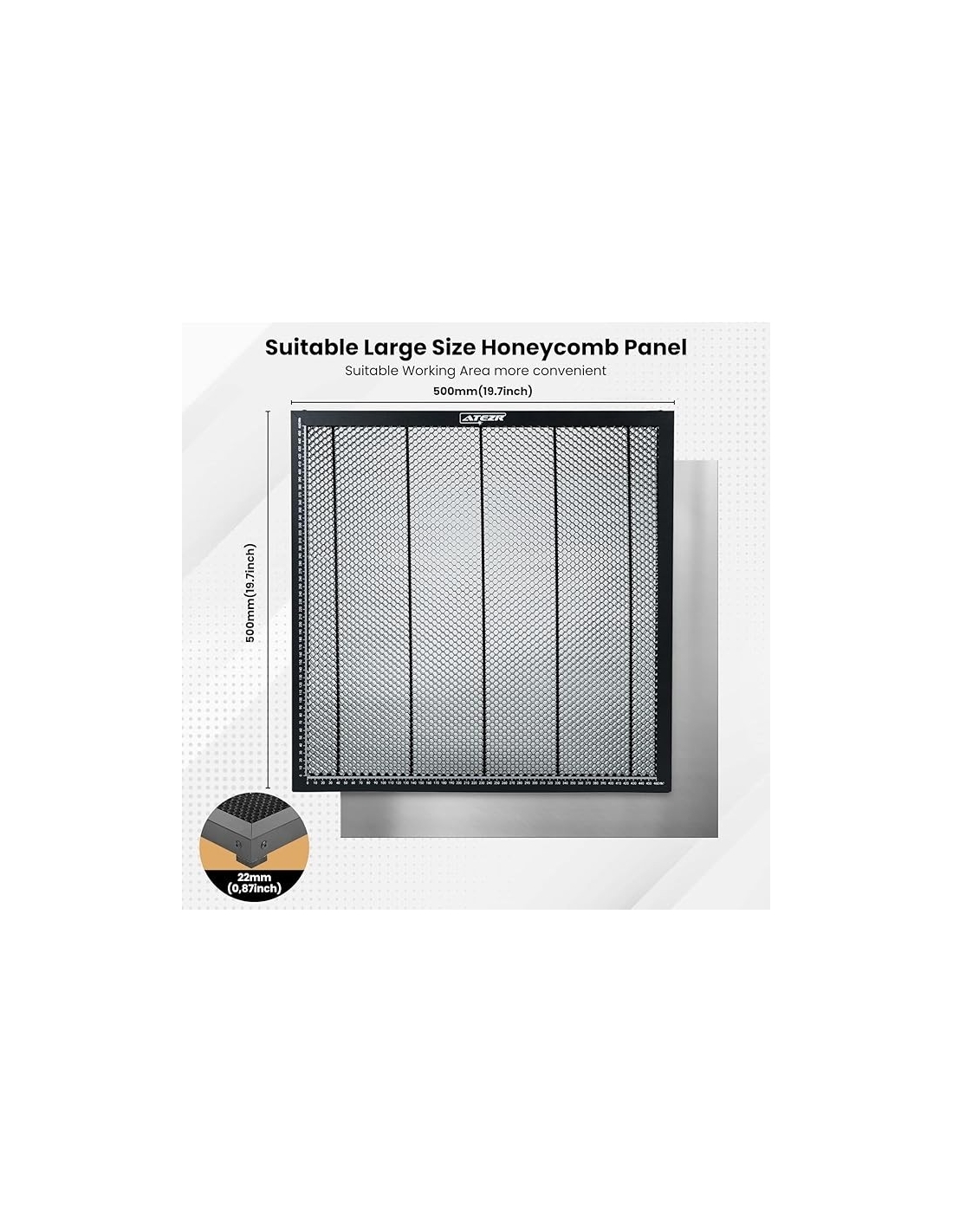 - Ampia compatibilità: ATEZR laser da tavolo a nido d'ape extra large 500 x 500 x 22mm. Questa macchina è compatibile con varie macchine per incisione laser avanzate, come: incisione laser a diodi fai-da-te e macchina per incisione laser CO2. I pannelli a nido d'ape di grandi dimensioni possono coprire completamente l'area di lavoro della macchina per incisione laser, proteggere meglio il tuo banco da lavoro e soddisfare le esigenze di lavori di incisione e taglio di grandi dimensioni.