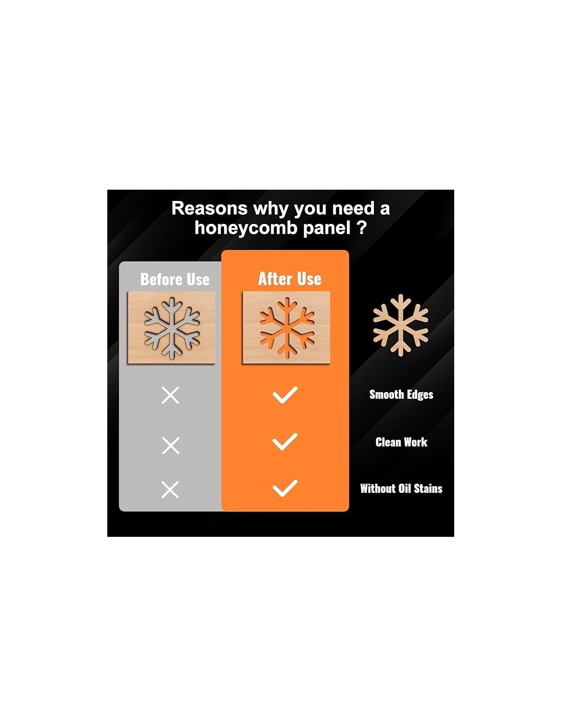 - Accessori necessari per il taglio laser: ATEZR piano di lavoro a nido d'ape dissipa efficacemente i fumi ed evita ustioni eccessive, mantenendo la superficie di taglio pulita e ordinata. Impedisce inoltre che i riflessi laser danneggino la testa laser durante il taglio e prolunga la durata del laser.