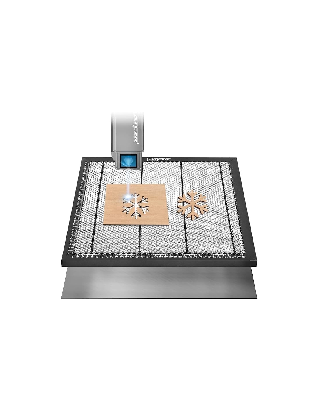 - Desktop a doppia protezione: ATEZR scheda a nido d'ape adotta un design scientifico e ragionevole dell'altezza del nido d'ape per prevenire la bruciatura laser del banco da lavoro o del desktop. È inoltre dotato di un pannello posteriore protettivo in metallo resistente al taglio, che può proteggere ulteriormente il piano del tavolo dai danni del laser.