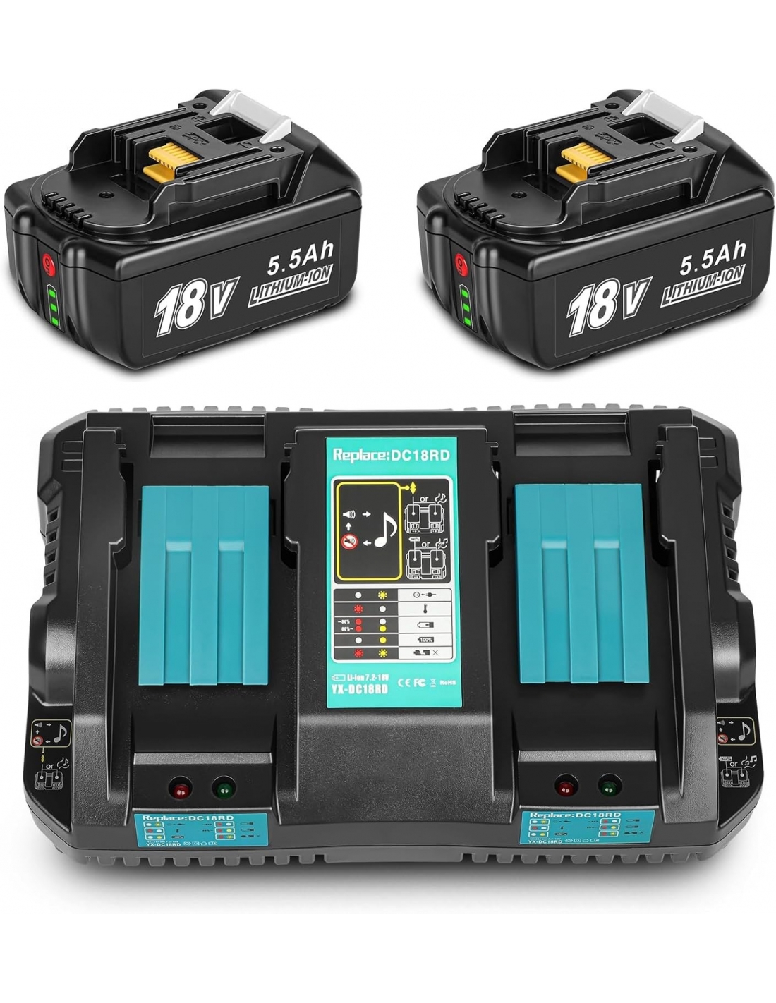 - 【COMPATIBILE CON MAKITA BATTERIA 18V CON CARICABATTERIA】 | Voltaggio: 18 V | Capacità: 5000 mAh Confezione da 2 | Batteria sostitutiva per makita 18 Volt Batterie. Caricatore doppio DC18RD compatibile per Makita caricabatterie: Ingresso: 100 ~ 240 V | Uscita: 14,4 ~ 18 V | Corrente di carica: 4 A | Può caricare 2 batterie contemporaneamente e carica tutte le batterie al litio da 14,4 V - 18 V