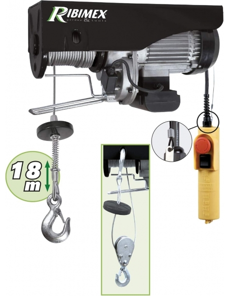 Ribimex Paranco Elettrico da 300/600 Kg con Puleggia, Motore Monofase da 1050 W, Cavo in Acciaio di 18 m, Velocità di Sollevamento Fino a 8 m/min per Uso Domestico e Industriale - PE300/600C/1