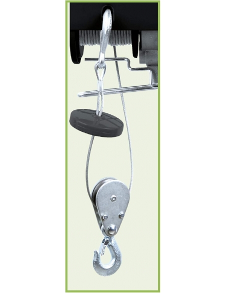 - Versatile: grazie alla fune singola di 18 metri, il paranco è in grado di sollevare carichi fino a 300 kg; con la fune doppia di 9 metri, la capacità di carico raggiunge i 600 kg, rendendolo ideale per una vasta gamma di lavori, dai giardini alle officine