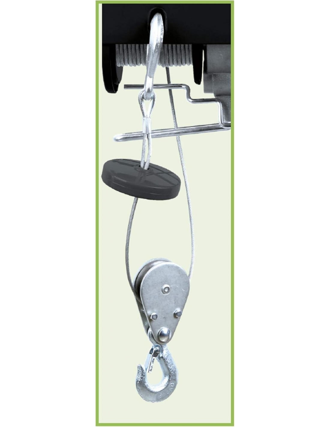 - Robusto cavo in acciaio: equipaggiato con un cavo in filo d’acciaio intrecciato di 18 metri, il paranco garantisce una stabilità eccezionale durante il sollevamento e la discesa dei carichi, riducendo il rischio di torsioni e aumentandone la sicurezza