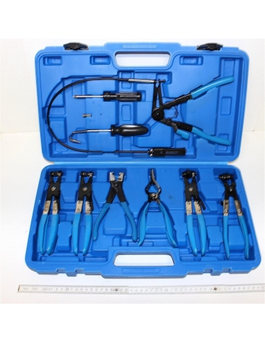 Ruhr Werkzeug Set risparmio: 9 pezzi pinze stringi tubo pinze set in valigetta. Montaggio e smontaggio di morsetti a molla o clic ecc. con 1 pinza con cavo Bowden, ideale per auto officina.